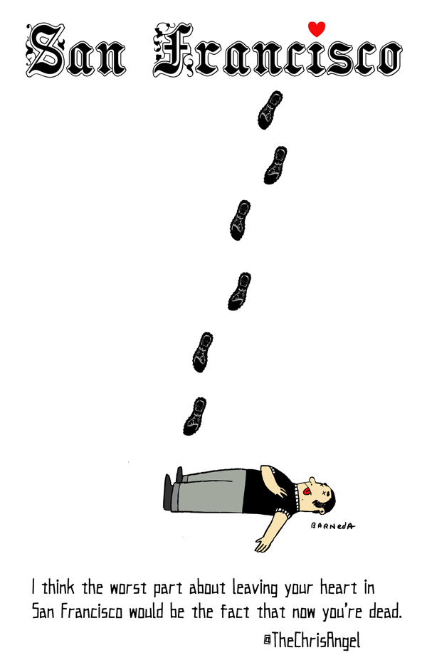 I think the worst part about leaving your heart in San Francisco would be the fact that now you're dead. -Â @TheChrisAngel