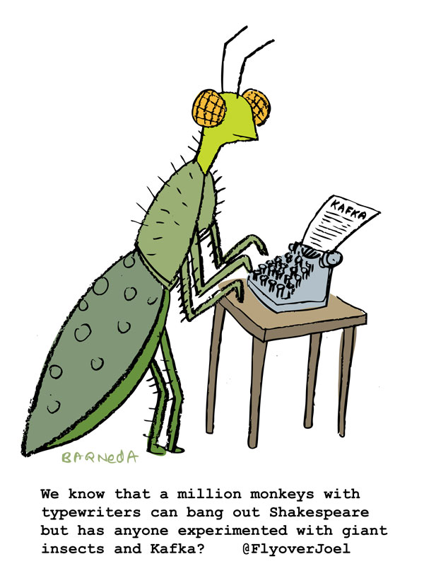 We know that a million monkeys with typewriters can bang out Shakespeare but has anyone experimented with giant insects and Kafka? @FlyoverJoel