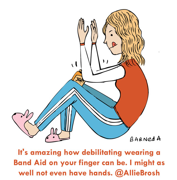 It's amazing how debilitating wearing a Band Aid on your finger can be. I might as well not even have hands. @AllieBrosh