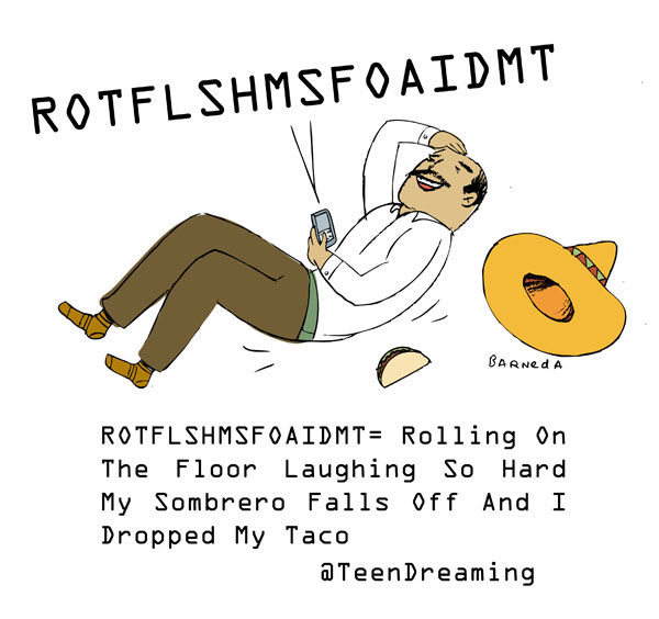 ROTFLSHMSFOAIDMT= Rolling On The Floor Laughing So Hard My Sombrero Falls Off And I Dropped My Taco - @TeenDreaming