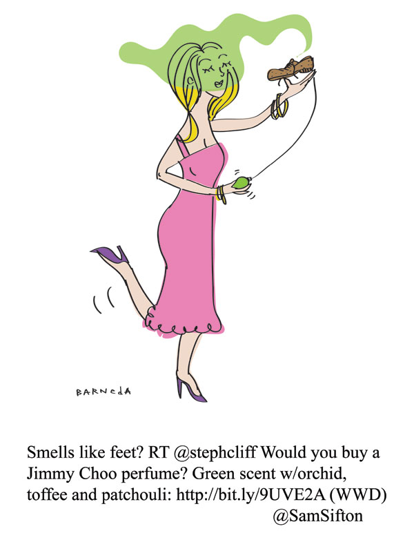 no. 116 - @SamSifton Smells like feet? RT @stephcliff Would you buy a Jimmy Choo perfume? Green scent w/orchid, toffee and patchouli: http://bit.ly/9UVE2A (WWD) - @SamSifton Comments (0) Commenting is closed. Click here to view up to the first 100 of this post's 0 comments